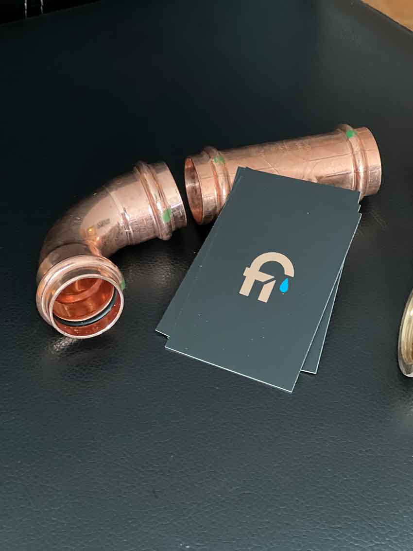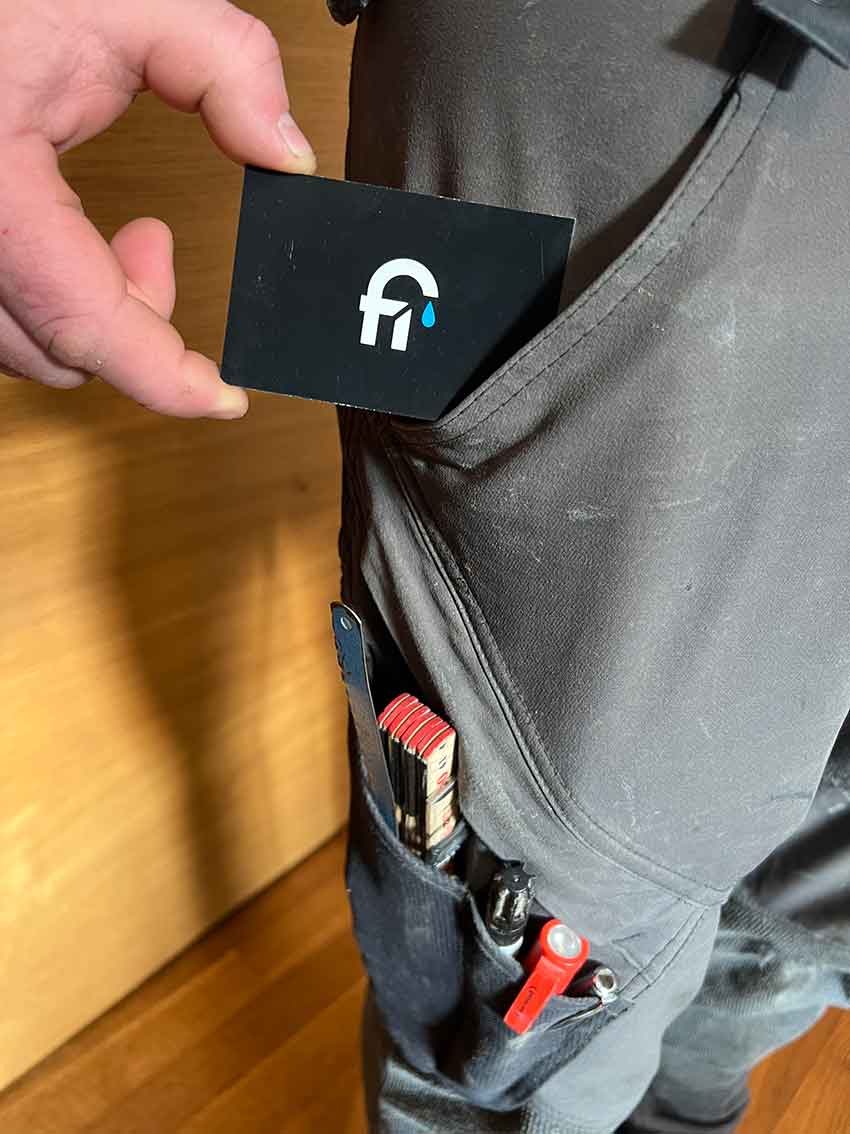 Die Bildmarke – die auf den ersten Blick einen tropfenden Wasserhahn darstellt – besteht zudem bei näherem hinschauen aus den Initialen des Kunden, einem „r“ und aus einem „f“, die mitsamt einem „i“ das für Installationen steht, eine ausgereifte Bildmarke darstellt, die sich dem Betrachter gut einprägt.
